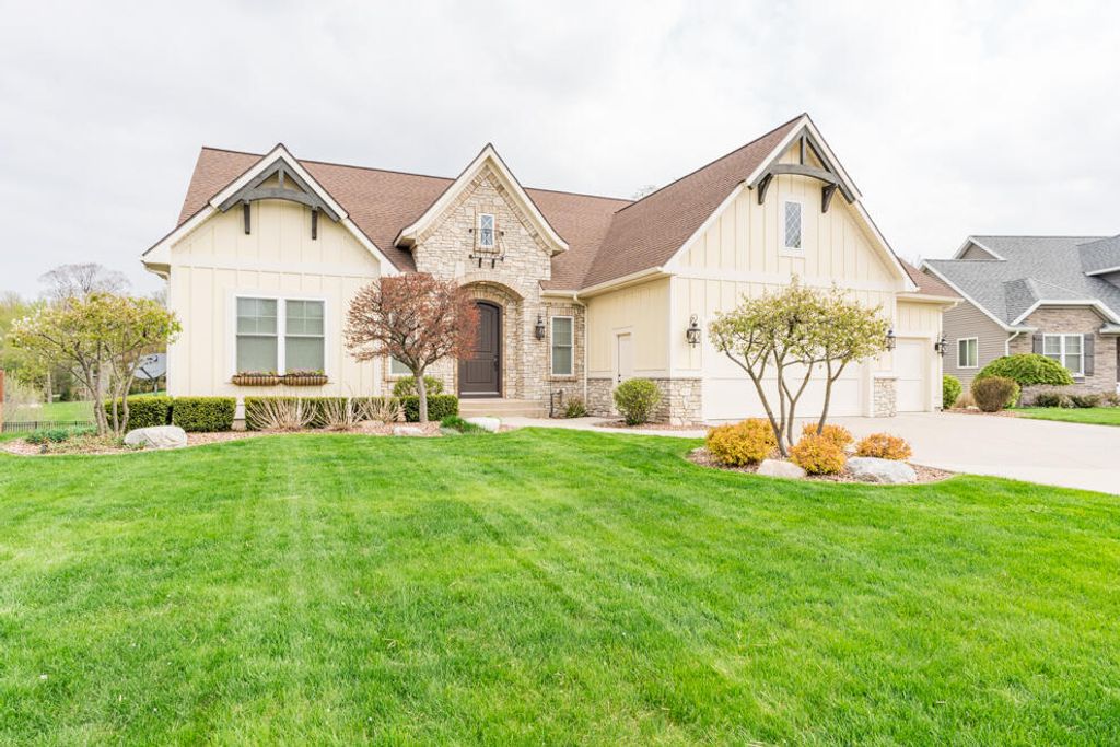 This high quality custom home was built by Dan Vis. Enter the home through an amazing arched door and admire the space. The main floor features a large primary bedroom with attached bath and walk in closet. Down the hall are two additional bedrooms. There is an additional 1.5 baths, and an office on the main floor. Relax in the oversized living room or enjoy doing some cooking in the upgraded kitchen. The finished lower level features great entertaining space with a wet bar, 2 more bedrooms and an additional full bath. Plenty of storage areas. Relax on the deck and take in the view of the treelined backyard and stream. Call today for your private showing.