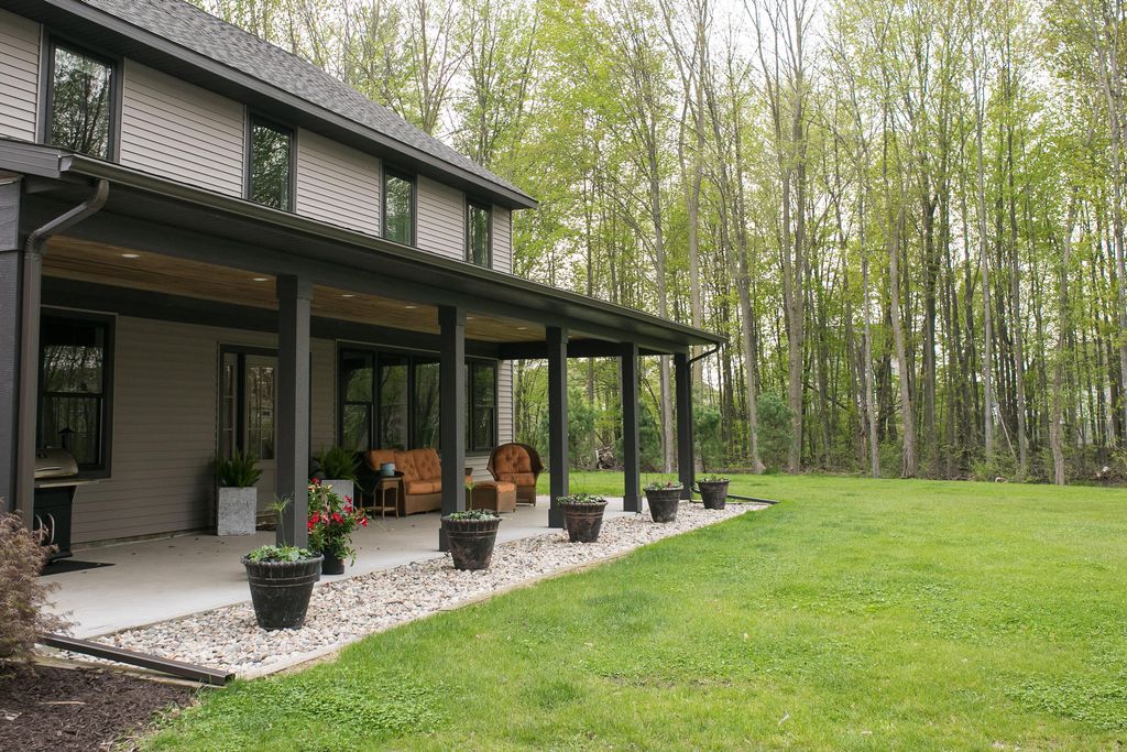 The winding drive welcomes you into a truly majestic property. An oasis of over 5 wooded acres tucked neatly in Byron Center, you are minutes from everything but will feel a world away. This one-of-a-kind custom home is the Builder’s personal residence and must be seen to believed: nearly 5,000sqf that leverage the wooded views at every turn! Open floor plan & massive living spaces begging to entertain with quaint touches like a sitting room and stone fireplace. Unique features abound int the Primary Suite, including a staircase in the walk-in closet leading to a finished attic with 650+ sqft of heated/cooled space currently used as a gym & a slider to a private balcony which is wired for a hot tub! The attached heated garage leads to a saltwater pool, shuffleboard court and covered patio